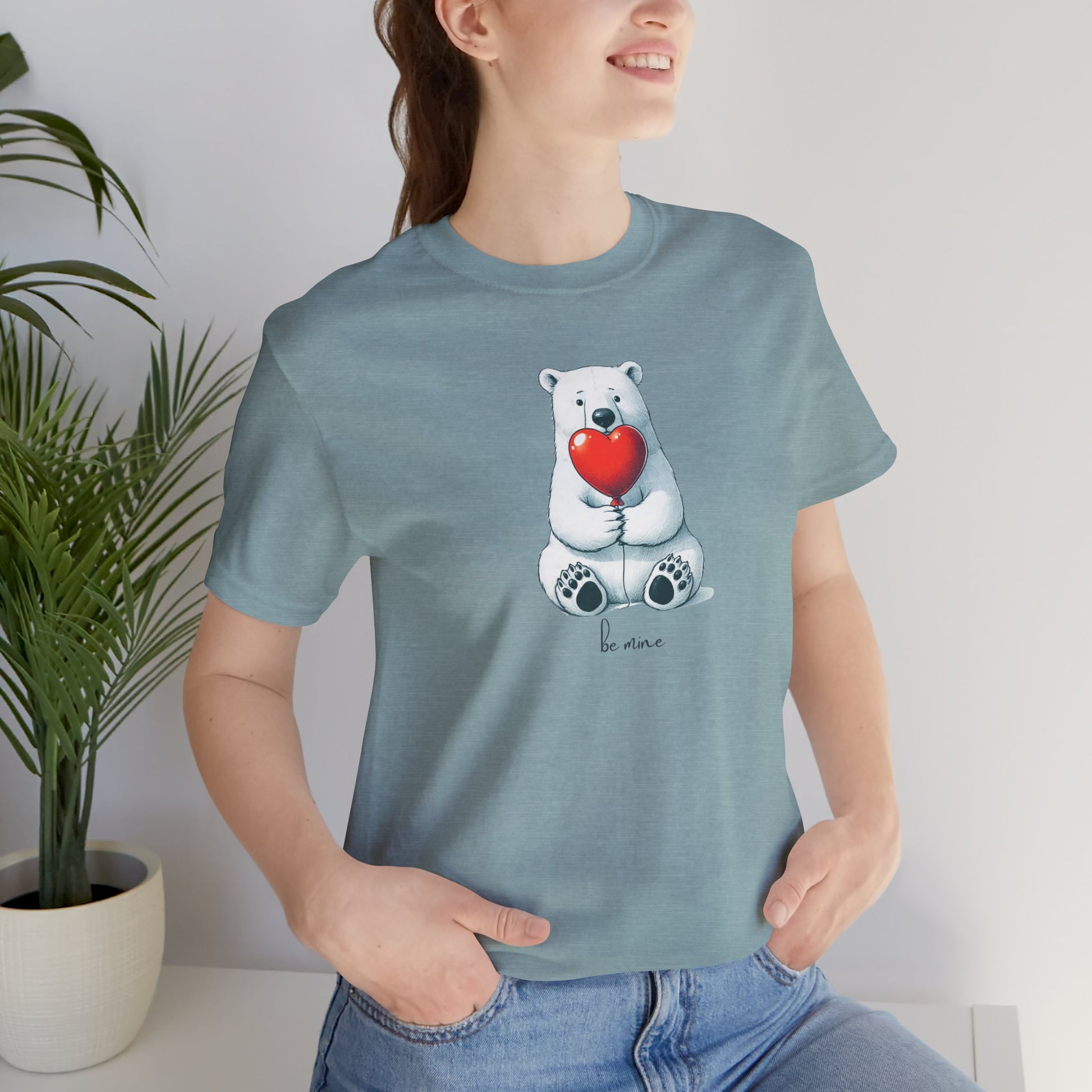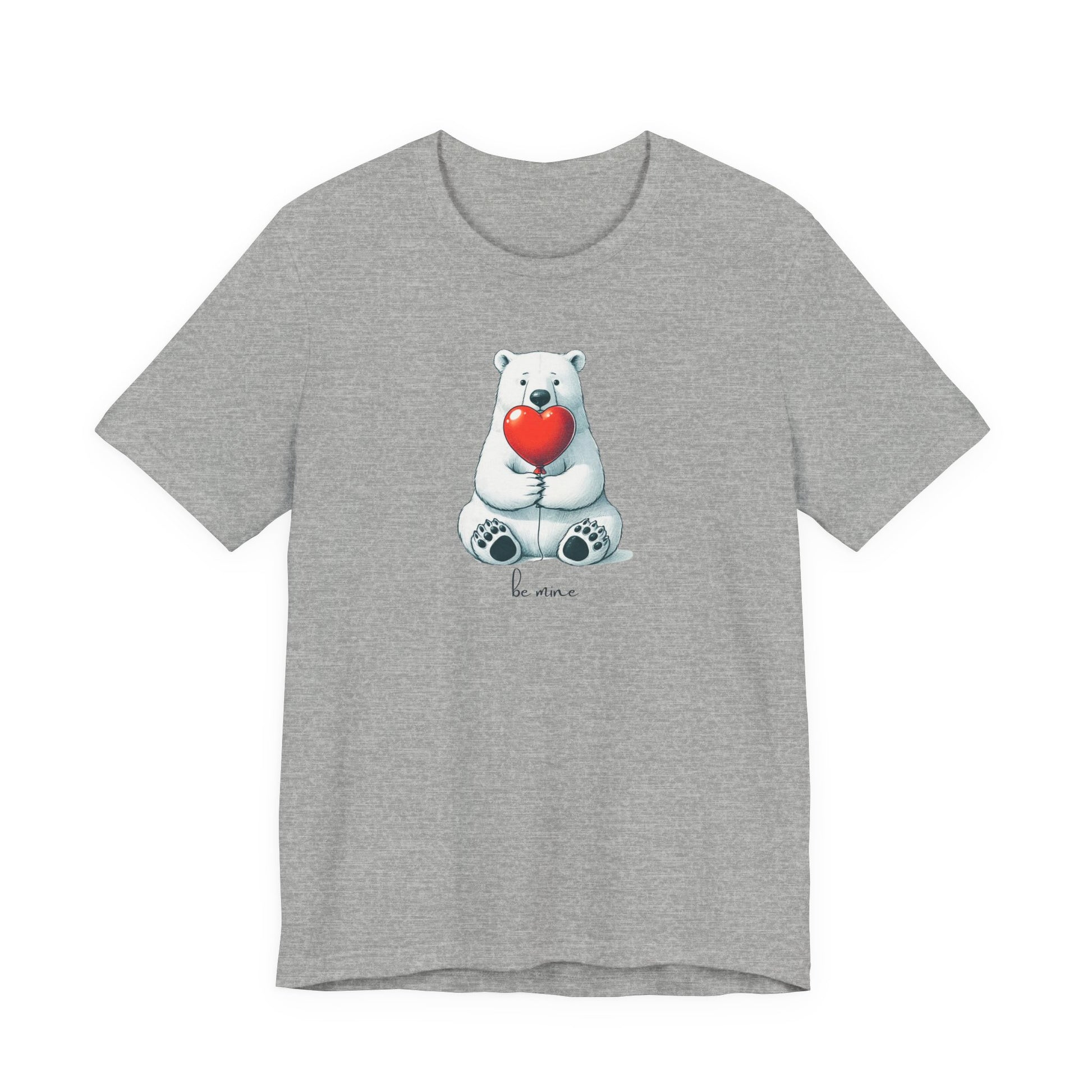 Sweet, simple, and full of heart — our Be Mine Polar Bear T-Shirt brings love to life with a gentle design of a polar bear holding a red heart balloon.