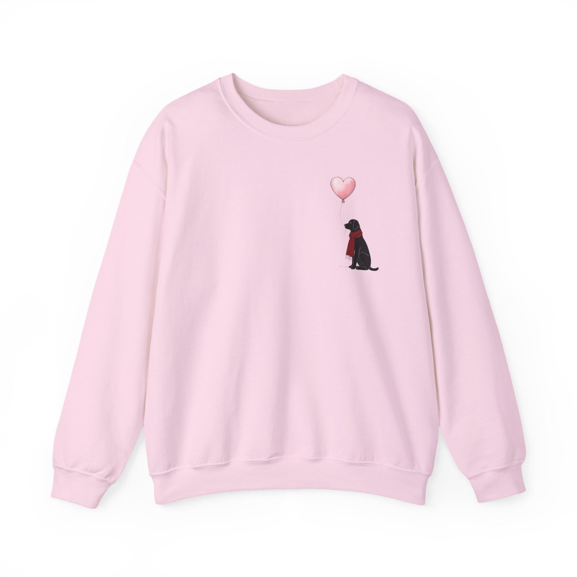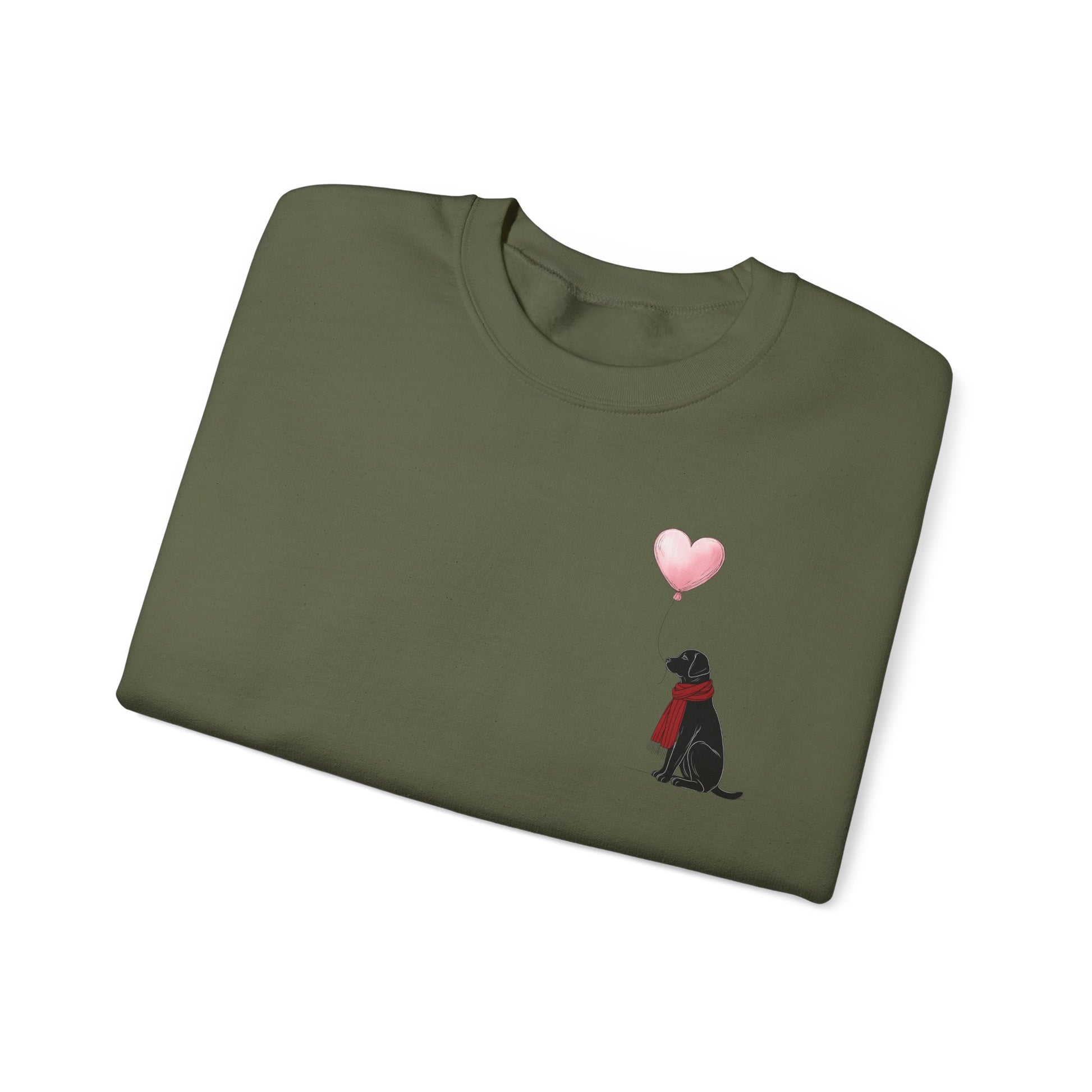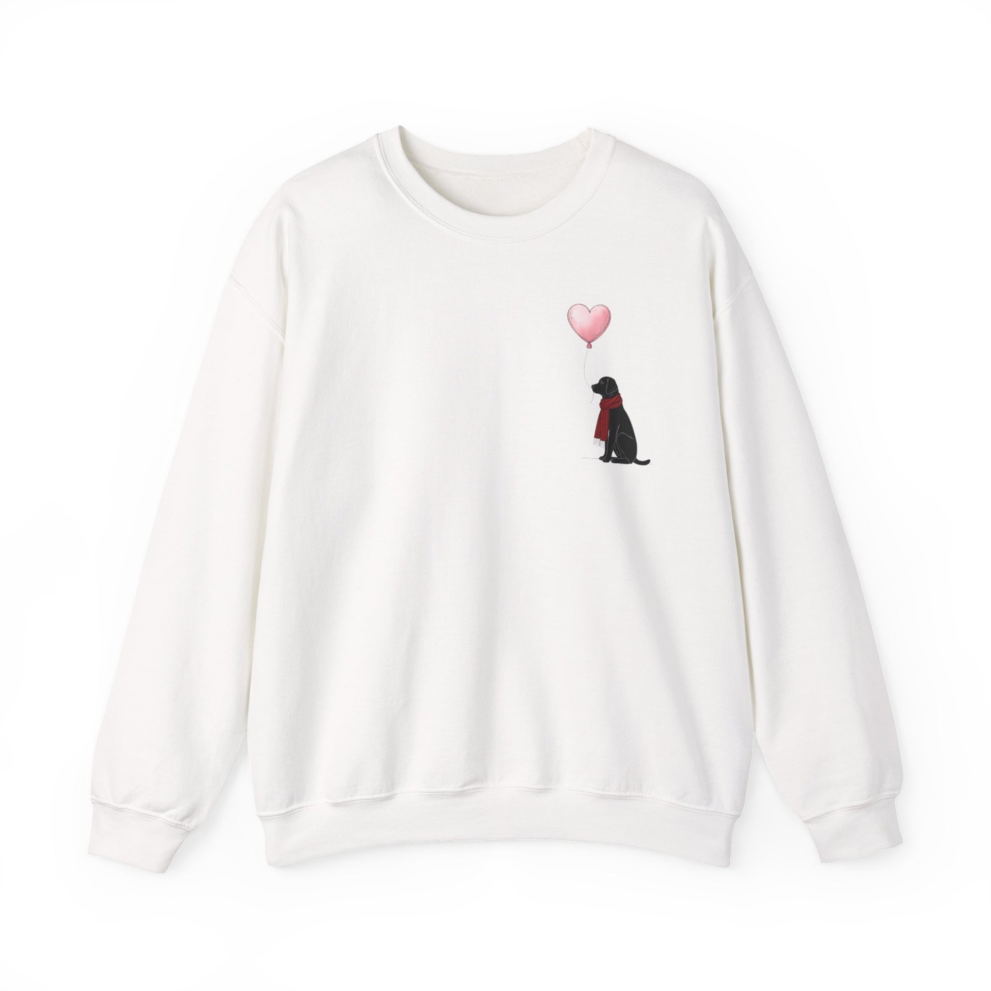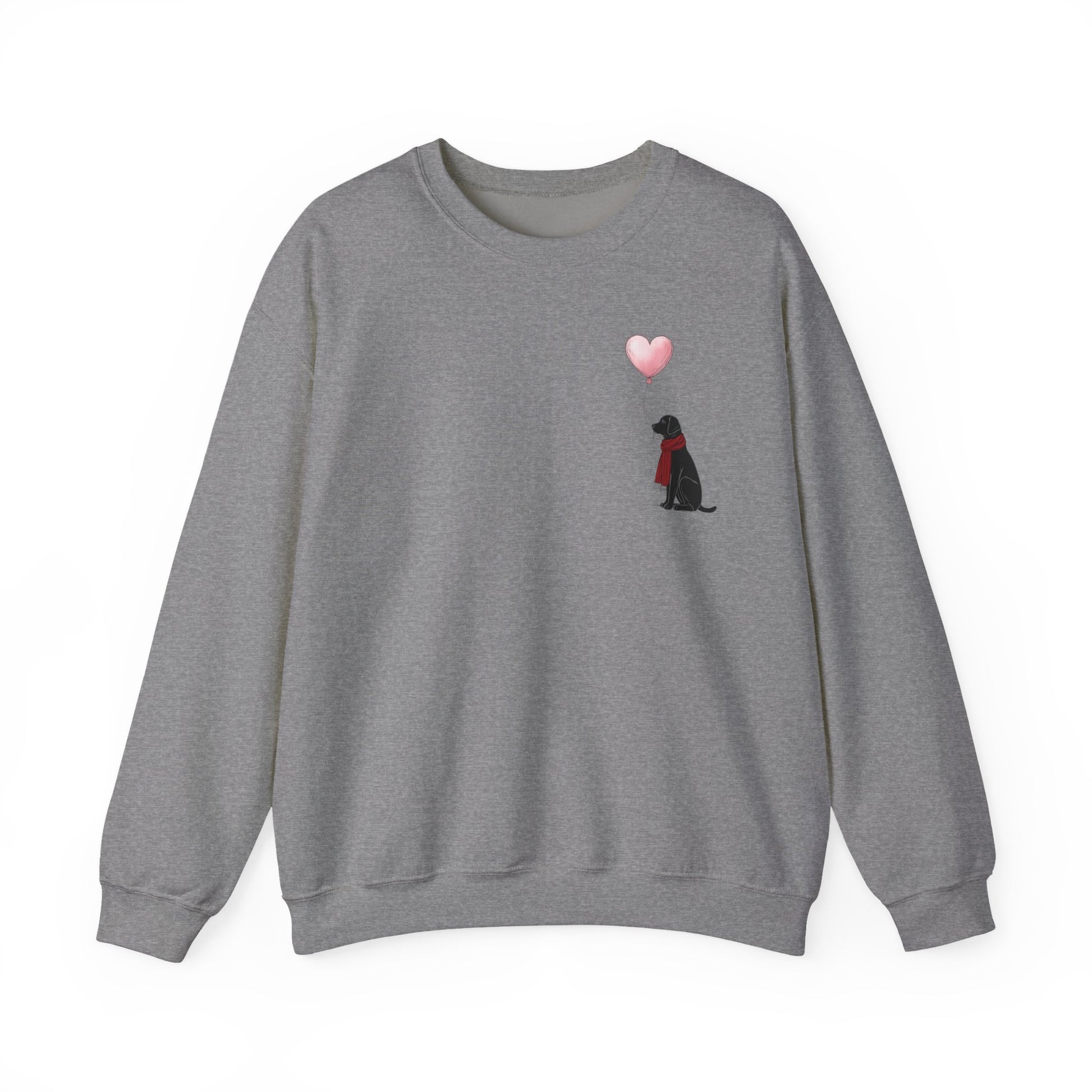 Soft, cozy, and thoughtfully designed, this Black Labrador sweatshirt features a subtle left-chest illustration of a loyal pup holding a heart balloon.