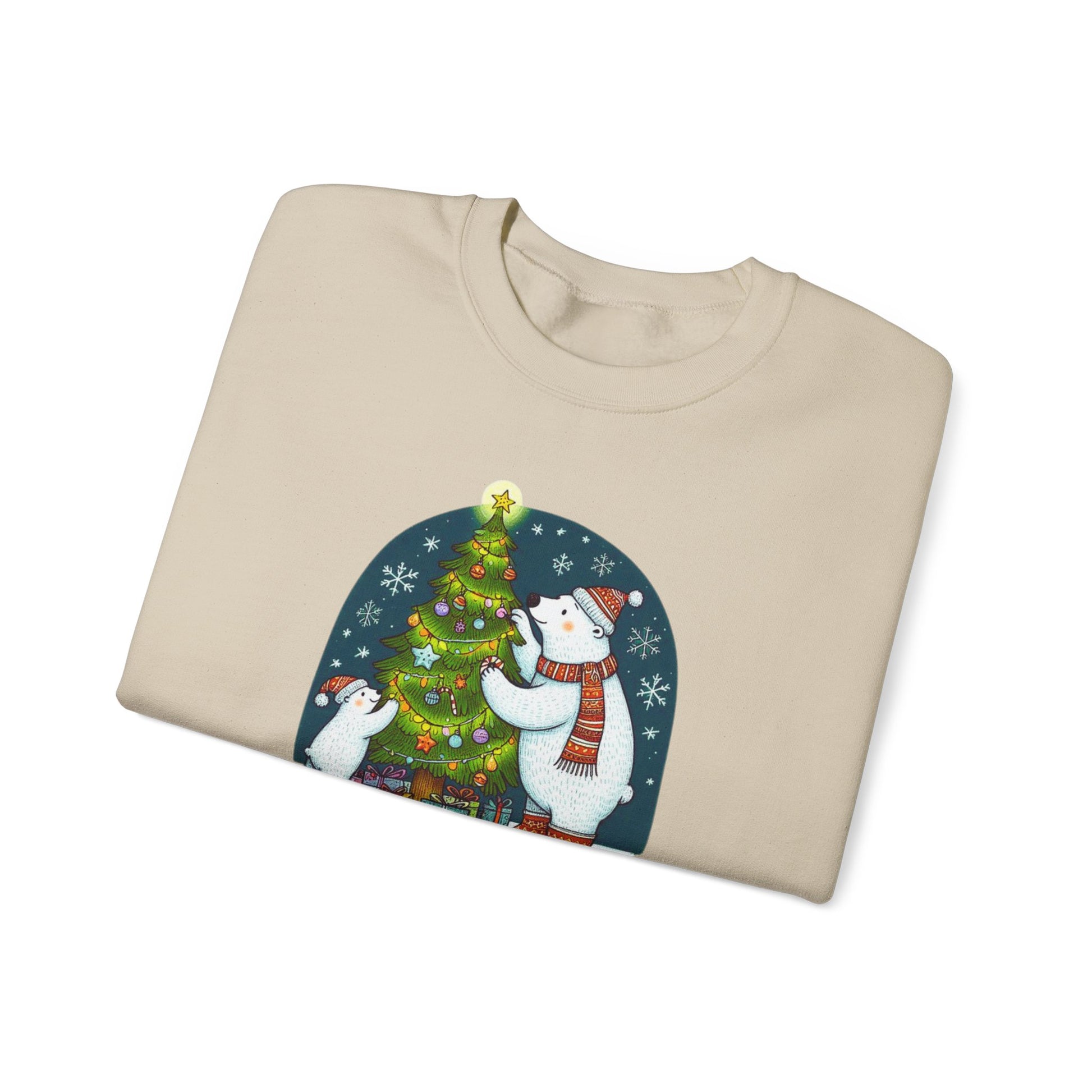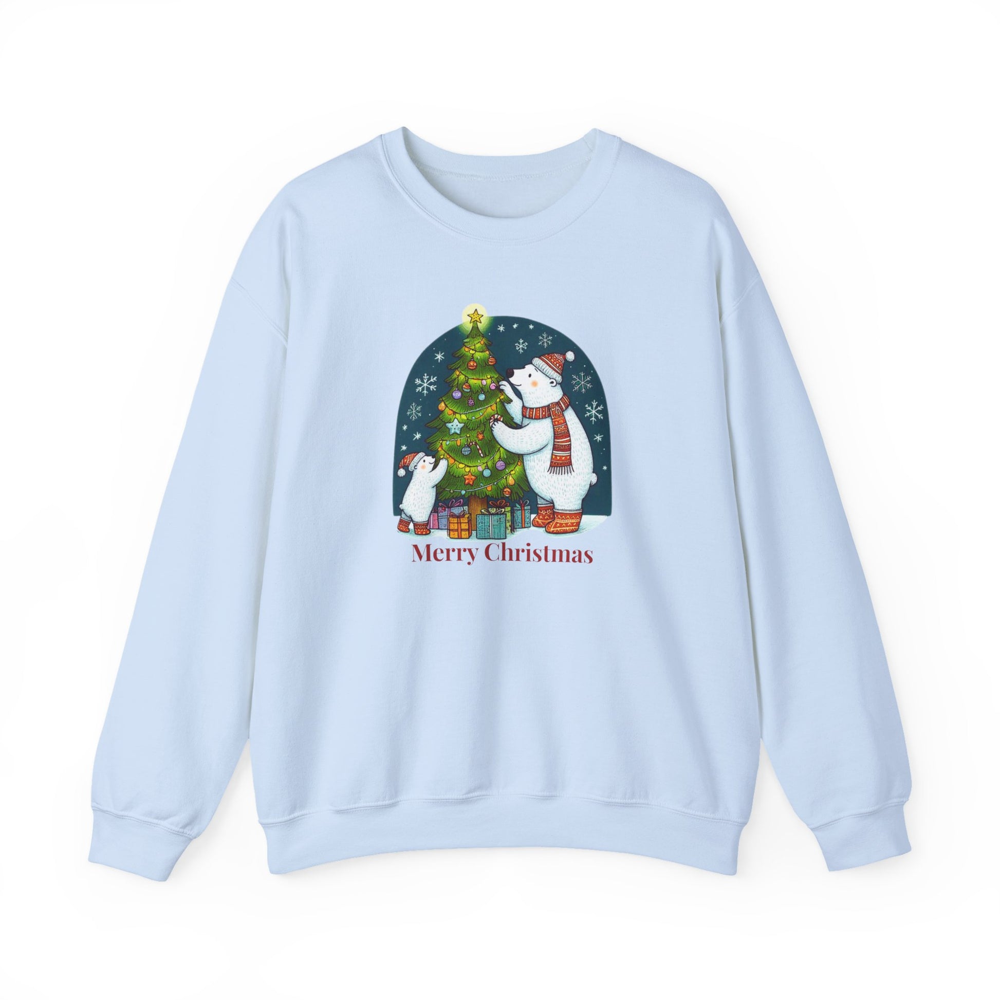 Celebrate the magic of the season with this Merry Christmas Polar Bear Sweatshirt. Featuring two polar bears decorating a glowing Christmas tree surrounded by gifts, this design captures the warmth, joy, and wonder of holiday traditions.