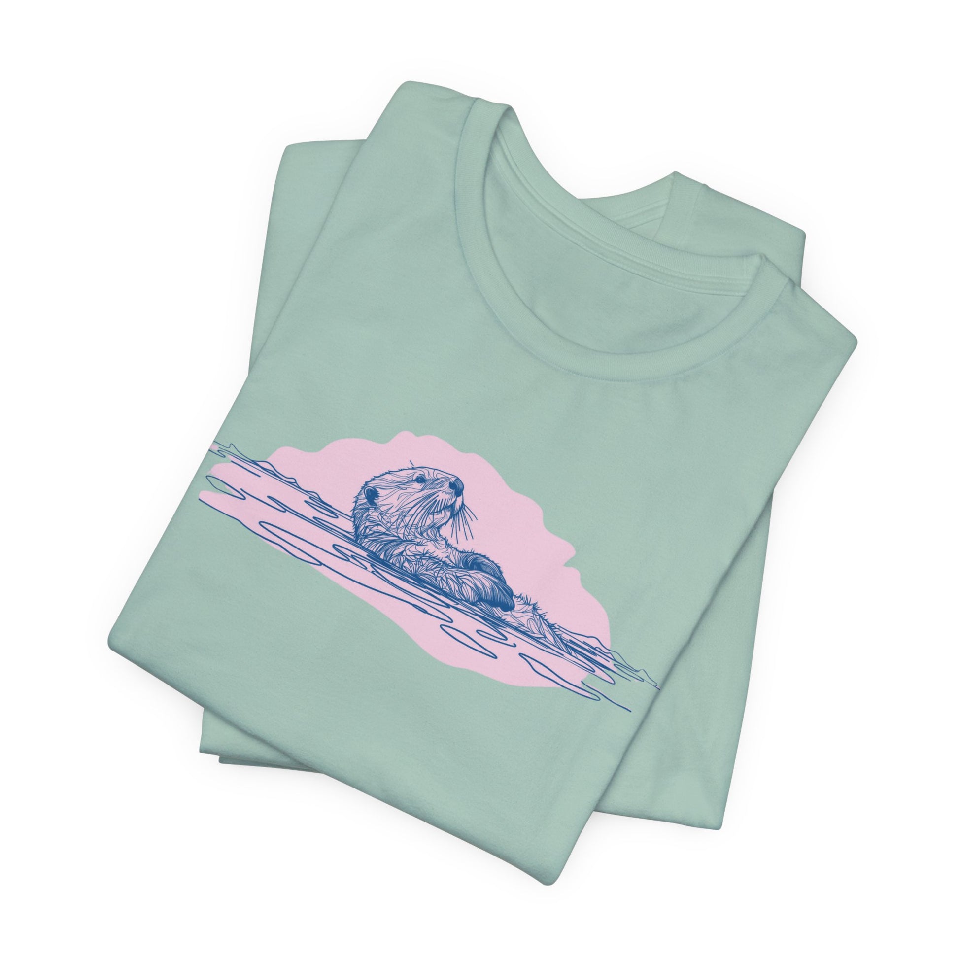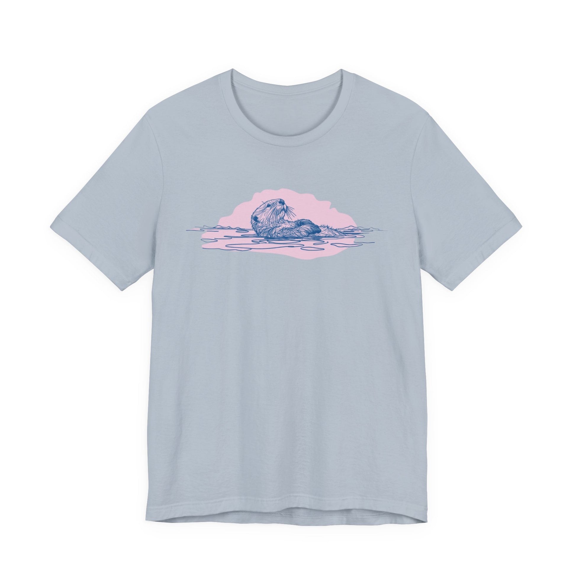A sea otter floats beneath a rose-tinted sky, basking in the glow of quiet water and soft light. This pastel illustration captures the peace of a seaside dusk, printed on a lightweight, comfortable tee that feels as gentle as it looks.