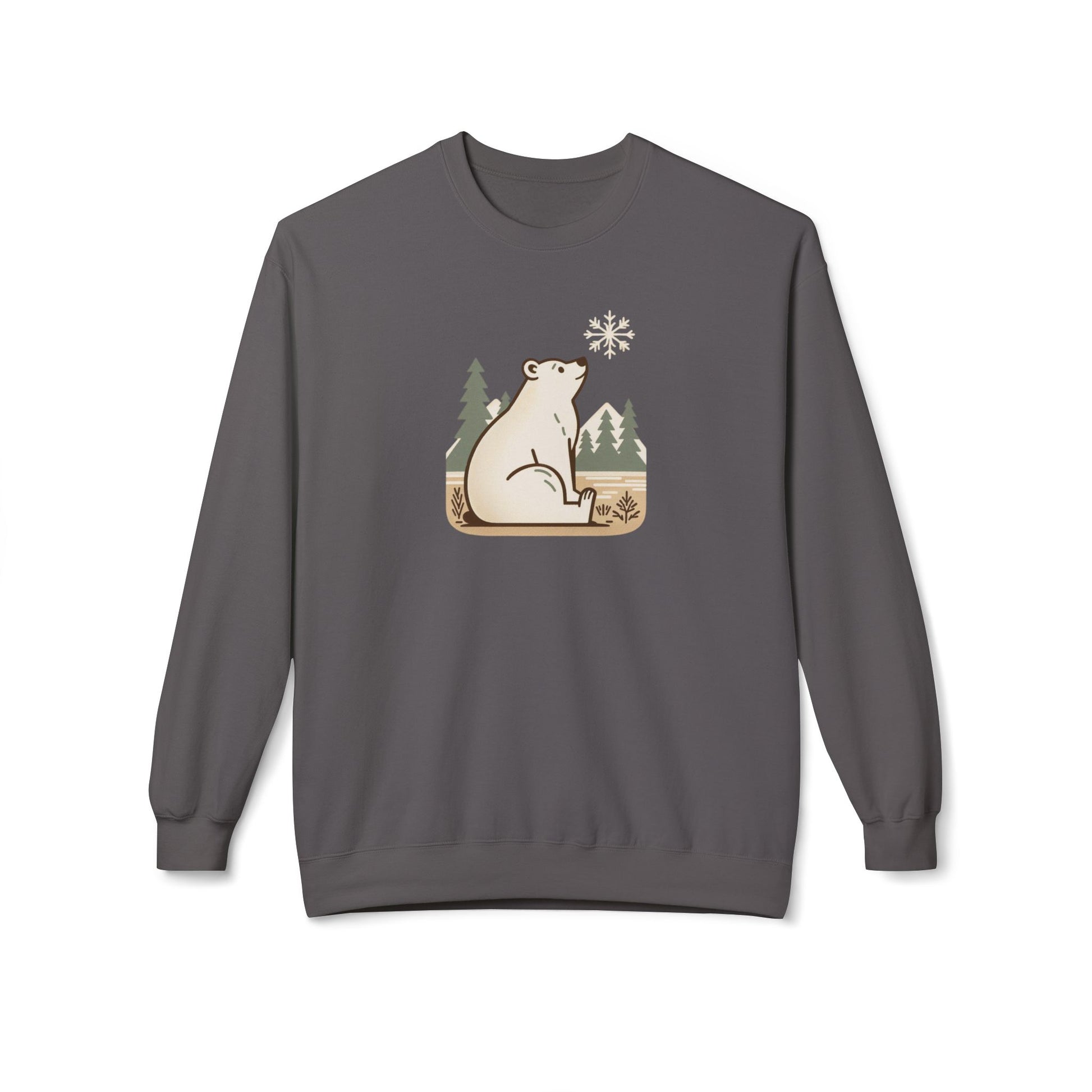 Wrap yourself in warmth and wonder with our Peaceful Polar Bear Sweatshirt. A calm bear gazes at a snowflake beneath mountain pines, bringing quiet winter charm to your everyday wardrobe. Soft, unisex, and made for comfort, this cozy crewneck captures the gentle spirit of the season -