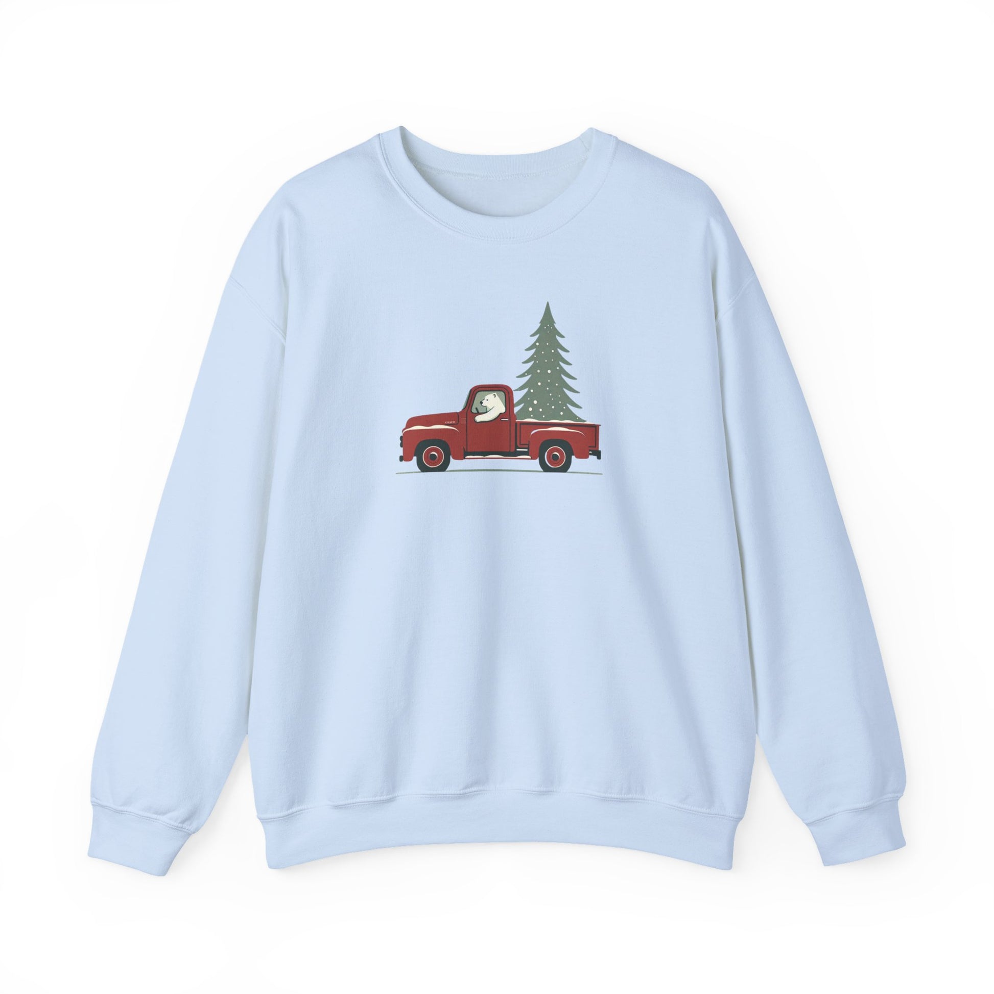 Celebrate cozy holiday drives and quiet winter charm with our Polar Bear Evergreen Run design. Featuring a cheerful polar bear behind the wheel of a vintage red truck hauling a tall evergreen, this print captures the magic of holiday tradition and simple joy.