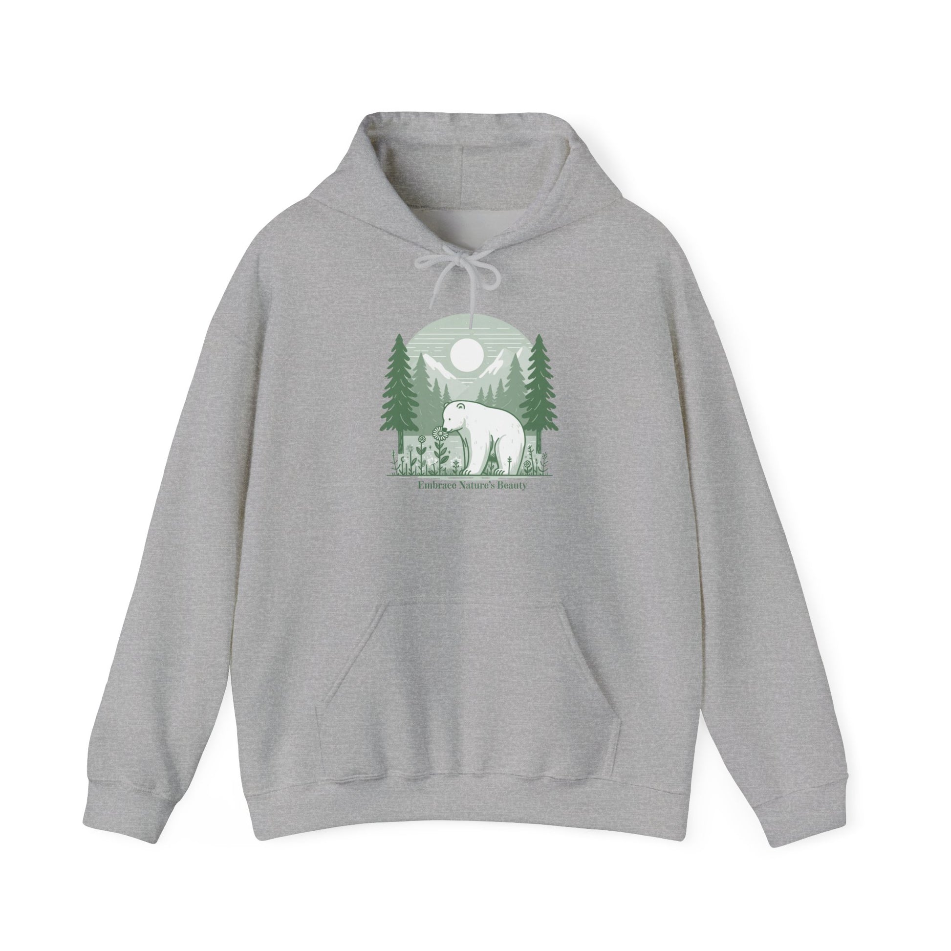 Wrap yourself in the calm of the wilderness with this Embrace Nature’s Beauty hoodie. Featuring a peaceful polar bear surrounded by wildflowers, evergreens, and mountain peaks under a glowing moon, this design captures the quiet magic of nature. The soft, monochromatic green palette gives it a timeless look that pairs beautifully with earthy or cool-toned hoodie colors. Cozy, uplifting, and inspired by the wild—this is a hoodie for nature lovers who carry the outdoors in their heart.
