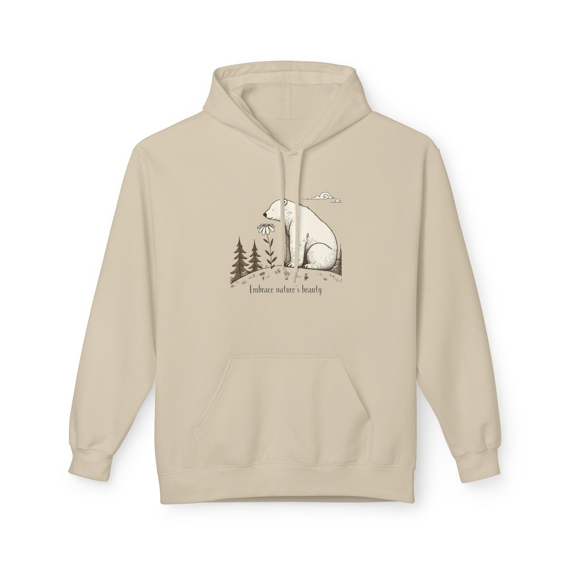 Wrap yourself in warmth and gentleness. Featuring a hand-drawn polar bear sitting peacefully among trees and wildflowers.