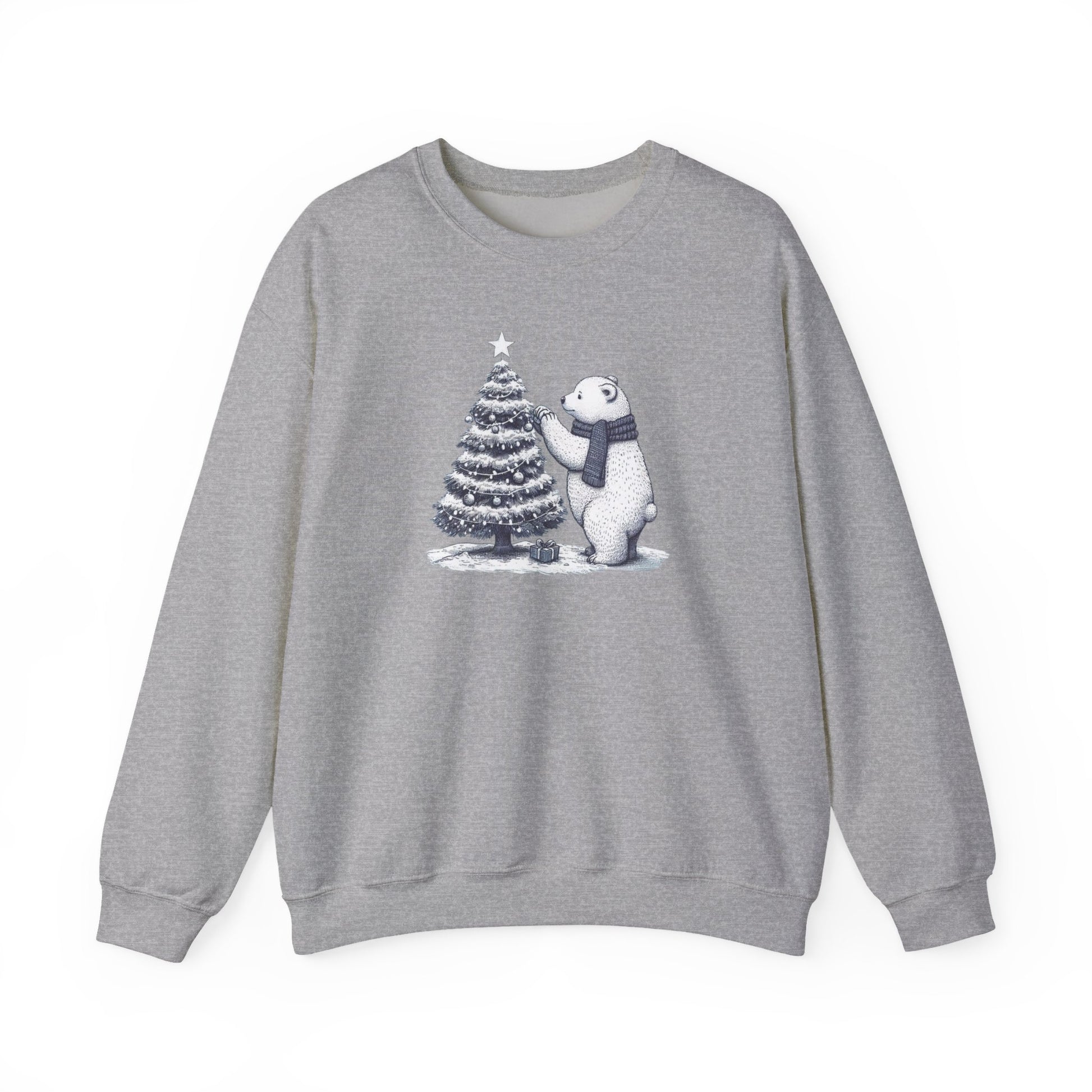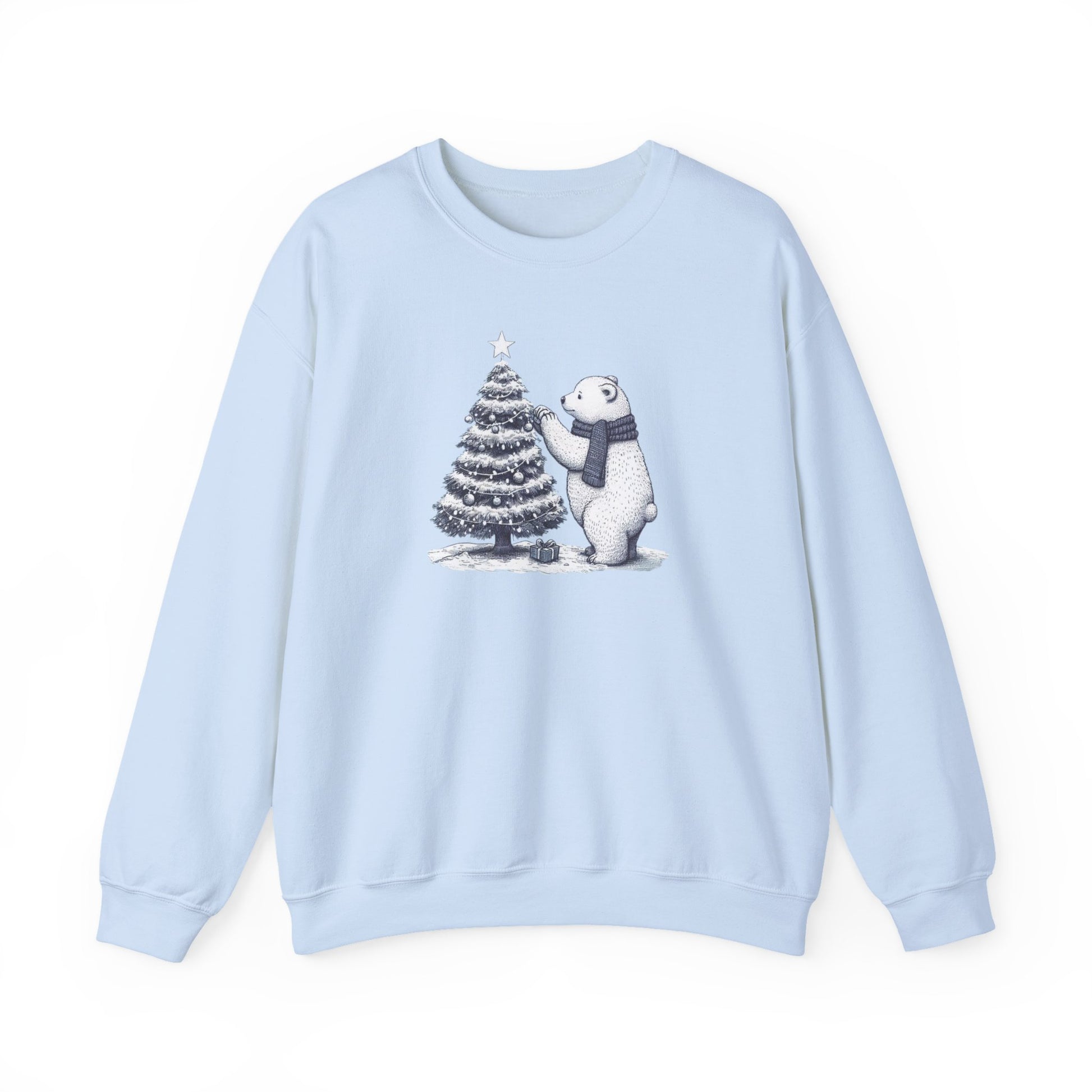 • Deep north serenity. Celebrate the season with our "Arctic Christmas" Sweatshirt. This high-definition illustration captures a heartwarming moment as a majestic polar bear adds the finishing touch to a snowy evergreen tree. Crafted from soft, heavy-blend fleece, it’s the perfect cozy layer for holiday gatherings and frosty winter mornings.
