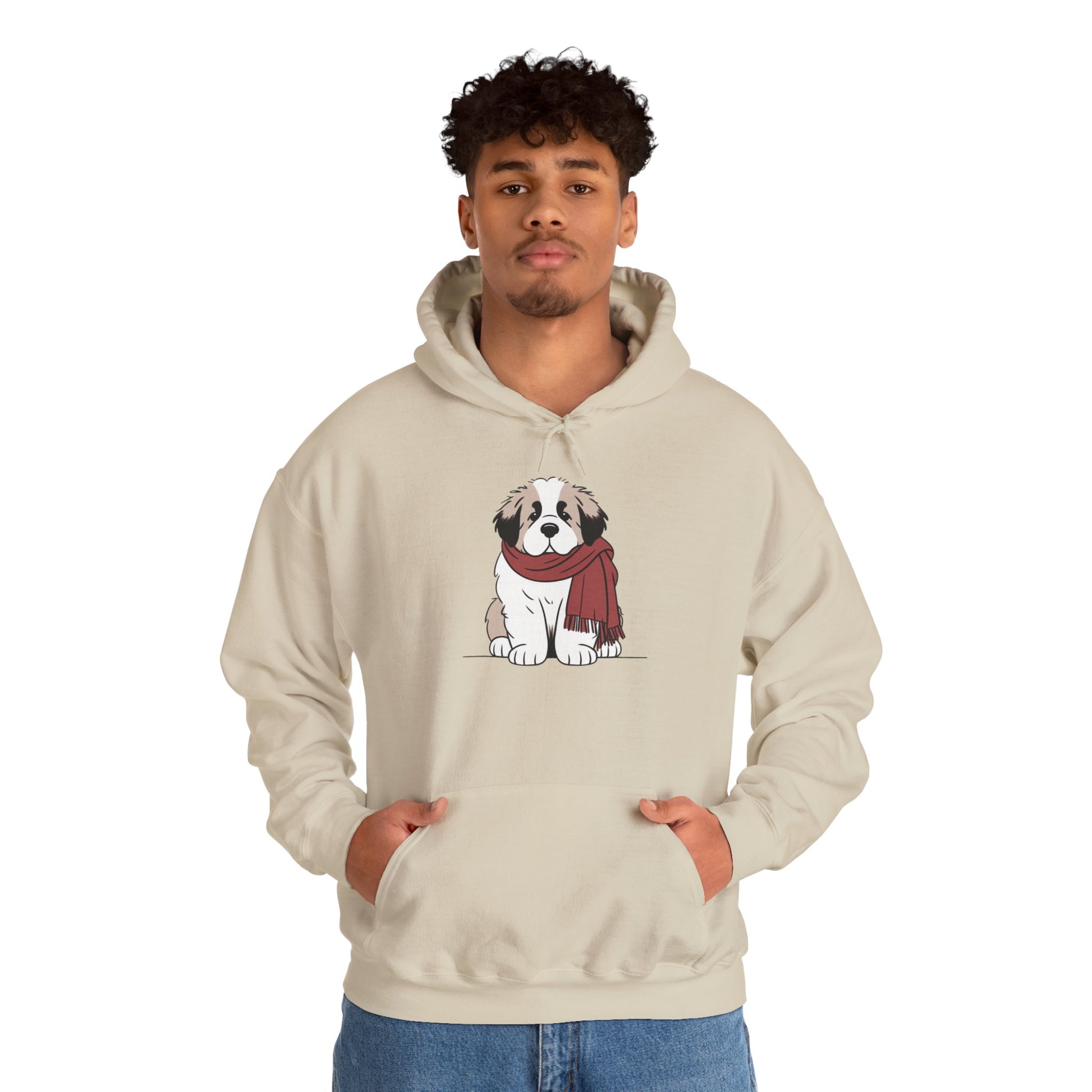 A sweet Saint Bernard puppy wrapped in a warm scarf brings cozy winter charm to this soft unisex hoodie. The gentle line art style keeps the design clean and classic while the rich red scarf adds a perfect seasonal touch. This is a warm and easy gift for dog lovers, Saint Bernard owners, and anyone who wants a soft touch of winter cheer in their wardrobe.